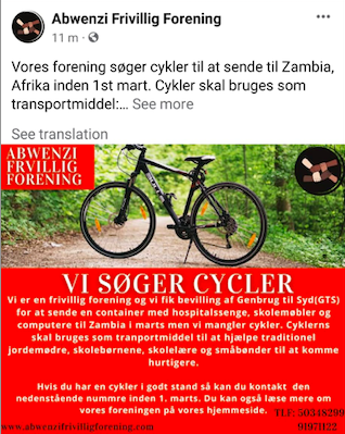 Abwenzi Frivillig Forening took it upon themselves to organize a few bicycles from well-wishers and friends, as the renovation warehouses did not have bicycles in stock to donate. Abwenzi´s social media platform Facebook and Instagram.